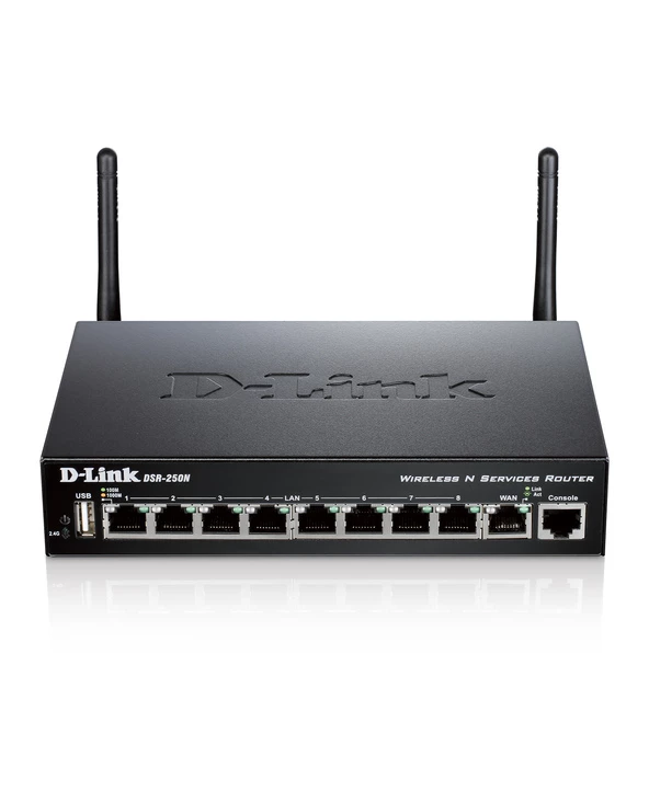 D-Link DSR-250N. Bande Wi-Fi: Monobande (2,4 GHz), Norme Wi-Fi: Wi-Fi 4 (802.11n), Standards wifi: 802.11b, 802.11g, Wi-Fi 4 (802.11n). Type d’interface LAN Ethernet: Gigabit Ethernet, LAN Ethernet : taux de transfert des données: 10,100,1000 Mbit/s, Technologie de cablâge: 10/100/1000Base-T(X). Algorithme de sécurité soutenu: WEP, WPA-PSK, WPS, Pare-feu de sécurité: Port Address Translation (PAT). Protocoles de gestion: SNMP, HTTP/HTTPS, Protocoles réseau pris en charge: IPv6. Couleur du produit: Noir