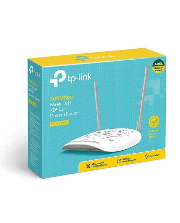 TP-LINK TD-W8961N. Bande Wi-Fi: Monobande (2,4 GHz), Norme Wi-Fi: Wi-Fi 4 (802.11n), Débit de transfert des données WLAN (max): 100 Mbit/s. Type d’interface LAN Ethernet: Fast Ethernet, LAN Ethernet : taux de transfert des données: 10,100 Mbit/s, Technologie de cablâge: 10/100Base-T(X). Génération de réseau mobile: 4G. Algorithme de sécurité soutenu: 64-bit WEP,128-bit WEP,WPA-PSK,WPA2-PSK. Protocoles réseau pris en charge: ATM Forum UNI3.1/4.0, PPP over ATM (RFC 2364), PPP over Ethernet (RFC2516), IPoA (RFC1577/2225),…